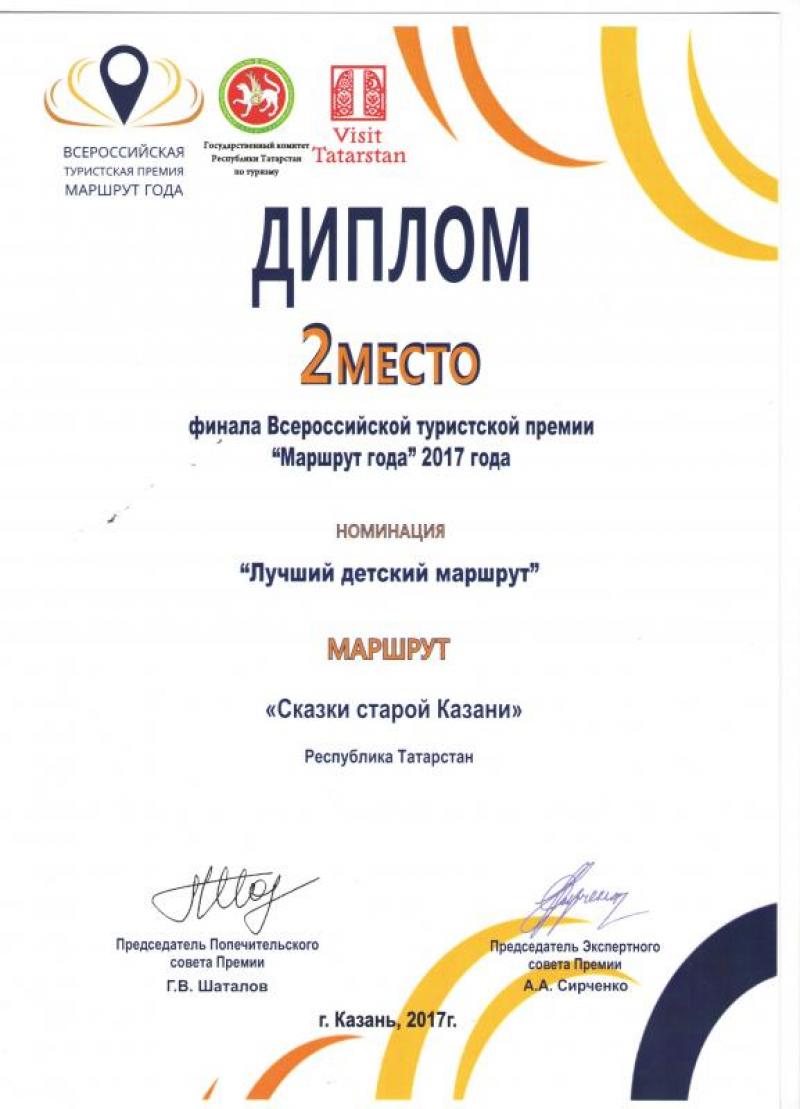 �Экскурсия "Сказки старой Казани" нашей разработки заняла II место в России в номинации "Лучший детский маршрут" премии "Маршрут Года 2017".